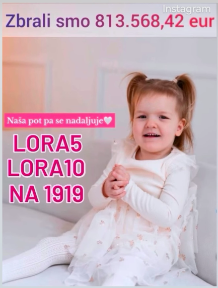 Starša male Lore, oči Jernej in mamica Rebeka, iz Uršnih Sel si še vedno prizadevata zbrati milijon evrov za razvoj genske terapije, ki bi deklici omogočila boljše življenje. Lora namreč trpi za izredno redkim sindromom GAND, ki ji onemogoča normalen razvoj, triletna deklica ne more hoditi ali govoriti.